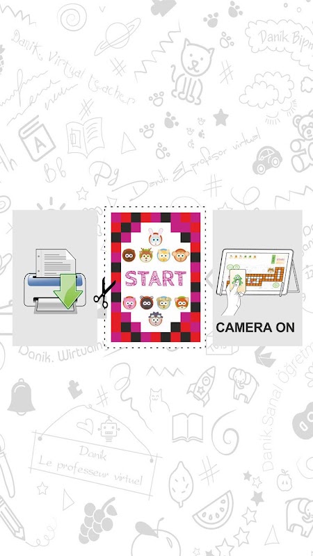 Download and print the cards. Solve the tasks of the program and then bring the cards close to the tablet camera. The program makes it possible to use only touchscreen without cards.