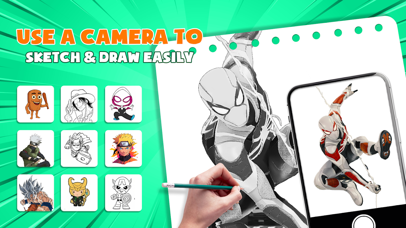 এআর ড্রয়িং - পেইন্ট এবং স্কেচের সাথে, এআর ড্রয়িং এনিমে অনায়াসে হয়ে ওঠে। ট্রেসিং টুল, এআর স্কেচ ওভারলে, এনিমে স্টেনসিল আঁকুন, এআর এনিমে স্কেচ লেয়ার, ড্রয়িং অ্যাপস ফ্রি স্কেচ মোড, এআর এনিমে টেমপ্লেট এবং একটি ড্রয়িং অ্যাপ স্টাইল ইন্টারফেস ব্যবহার করুন। একটি অঙ্কন গেম মোড উপভোগ করুন, এবং অ্যানিমে অঙ্কন প্রতিযোগিতা। আমাদের ar স্কেচ অঙ্কন অ্যাপ ইঞ্জিন খাস্তা লাইন এবং প্রাণবন্ত রং নিশ্চিত করে।