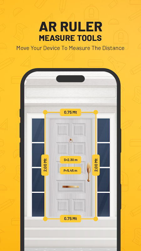 AR Ruler - Tape Measure Camera app uses augmented reality technology (AR) to tape measure the real world with your smartphone’s camera. Target aim on the detected plane and start to use AR tape measure tool. Thanks to Augmented Reality (VR), you can measure floors, dimensions of walls, windows, doors, or a whole home in a few seconds.