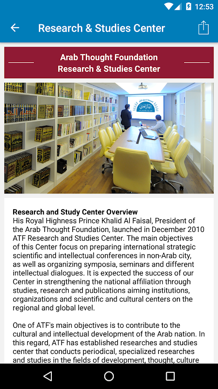 The Arab Thought Foundation ATF App, is a unique App that represents the initiatives, programs and forums conducted by the Foundation, that employ intellectual discourse for the benefit of the development, and render the development enrichment to thought. The Foundation believes that open and constructive dialogue between the business community, academia and civil society is imperative for the future development of the region. By sharing knowledge, nurturing creativity and building on this dialogue, practical solutions for our collective future can be forged.