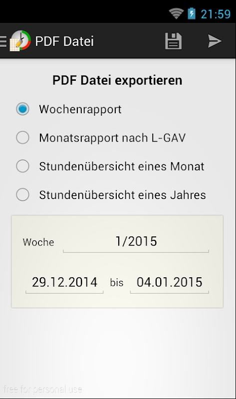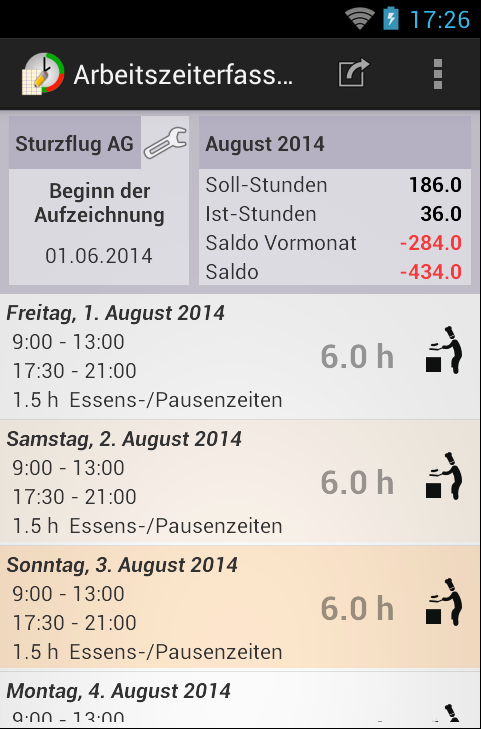 এই অ্যাপের পরিবর্তে, অনুগ্রহ করে "ওয়ার্কিং টাইম অ্যাকাউন্ট" অ্যাপ ব্যবহার করুন; এটি উত্তরসূরি, আরও নমনীয় এবং সক্রিয়ভাবে বিকশিত হচ্ছে।