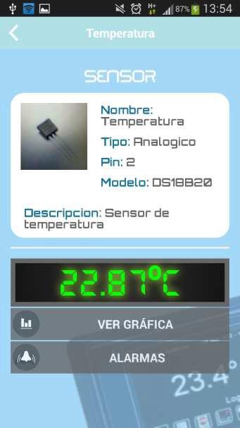 La aplicación también contiene automatización de ordenes a horas concretas además de alarmas y gráficas.