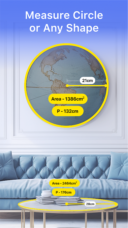 এরিয়া মেজারমেন্ট: AR টেপ, একটি ডিজিটাল মেজারমেন্ট টুল, যা আপনাকে অগমেন্টেড রিয়েলিটি প্রযুক্তি ব্যবহার করে যেকোনো কিছু পরিমাপ করতে সাহায্য করে স্মার্ট রুলার প্রিসিশন, রুলার অ্যাপ ইঞ্চি সাপোর্ট এবং ডিজিটাল মেজারমেন্ট টেপ স্টাইল অ্যাকুরেসি সহ।