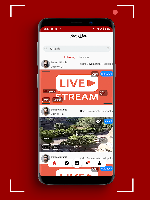 Discover popular live video streams from around the world or search for broadcasts by location or topic.