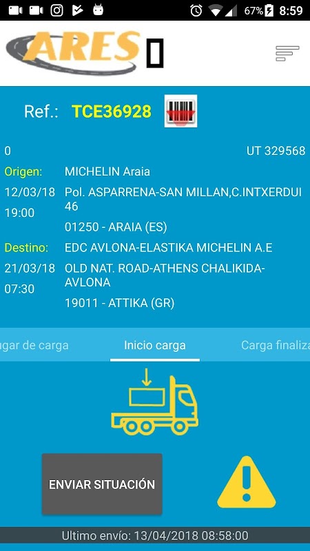 App de gestión de mercancias y flujo de información entre los choferes y la empresa Ares Bilbao.