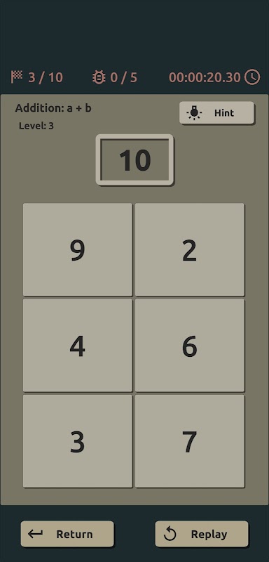 Fun arithmetic trainer for arithmetic operations like addition, subtraction, multiplication and division. In addition to training your ability to calculate quickly in your head, the game also trains your attention, as the correct answers have to be sought from some of the suggested variants. The number of variants increases with each level, which increases the difficulty of the game.