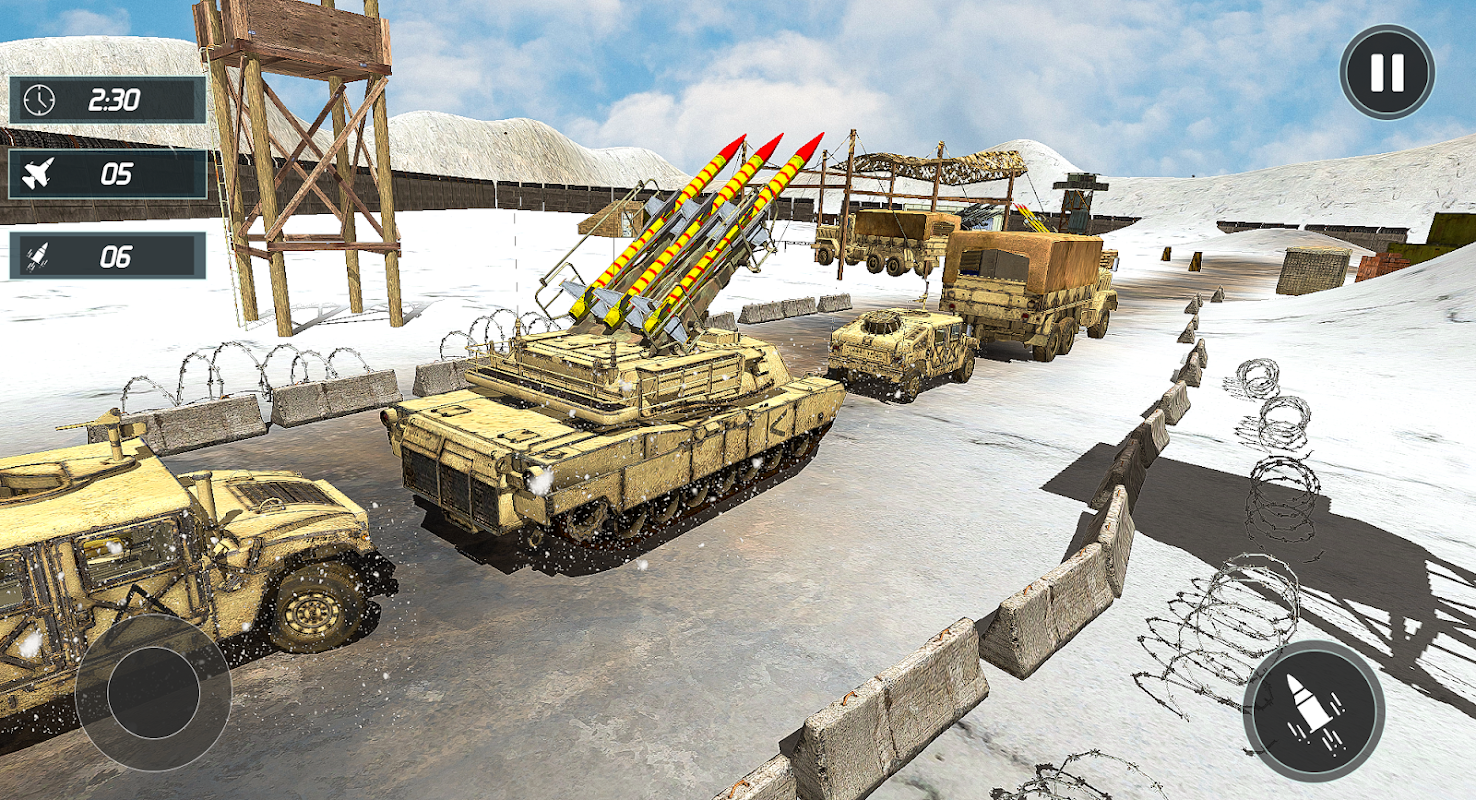 আমেরিকান ট্যাংক সহ এই উত্তেজনাপূর্ণ আর্মি মিসাইল অ্যাটাক সিমুলেটরে স্বাগতম। ইউএস আর্মি রকেট মিসাইল গেমগুলি বিশ্বযুদ্ধের ট্যাঙ্ক এবং আরপিজি গেমগুলির দুর্দান্ত উত্স। অফলাইন গেমগুলিতে শত্রুদের ড্রোন এবং হেলিকপ্টারগুলিকে আঘাত করার জন্য সামরিক যুদ্ধ ট্যাঙ্কগুলি রকেট লঞ্চার দিয়ে সজ্জিত। মিসাইল স্ট্রাইক ওয়ার মেশিন গেমগুলি সংঘর্ষে পূর্ণ, ট্যাঙ্ক ওয়ার মেশিন গেমগুলিতে আপনার শুটিংয়ের দৃষ্টিভঙ্গি প্রসারিত করুন। ইউএস ফাইটার এয়ারক্রাফ্টের বিরুদ্ধে বিশ্বযুদ্ধের মেশিন এবং রকেট লঞ্চারের এই রোমাঞ্চকর গেমপ্লে উপভোগ করুন। এই অনলাইন শুটিং অ্যাডভেঞ্চারে রকেট হামলার সাথে আকাশের জেট যুদ্ধবিমান ধ্বংস করুন। আধুনিক মিসাইল লঞ্চারে লোড ইউএস আর্মি মিসাইল ট্রাকের সাথে মজা এবং বিনোদন করুন। মিসাইল অস্ত্রে বোঝাই বিভিন্ন সামরিক ঘাঁটিতে ভারী ট্রাক চালান। কৌশল যুদ্ধ গেমের মার্কিন সেনা কমান্ডো হিসাবে মিসাইল শুটিং মিশন সম্পাদন করুন।