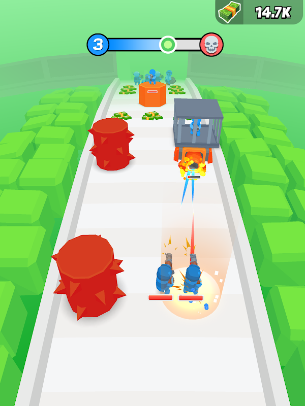 আর্মি রান ইভোলিউশনে স্বাগতম, চূড়ান্ত নৈমিত্তিক অন্তহীন রানার গেম যেখানে আপনি একটি রোমাঞ্চকর রেসে সেনাবাহিনীর নিয়ন্ত্রণ নিতে পারেন। কমান্ডার হিসাবে, আপনার উদ্দেশ্য হল ট্র্যাক বরাবর সৈন্যদের নেভিগেট করা, সৈন্য সংগ্রহ করা এবং তাদের উচ্চ-র্যাঙ্কড ইউনিটে বিকশিত করা। তিনজন সৈন্য স্বয়ংক্রিয়ভাবে একত্রিত হয়ে আরও শক্তিশালী এবং সম্পূর্ণ সুস্থ সৈনিক গঠনের সময় দেখুন।