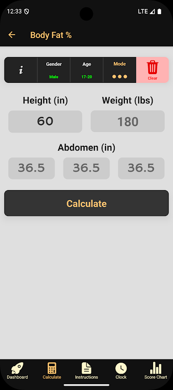 স্ট্যান্ডআউট বৈশিষ্ট্যগুলির মধ্যে একটি হল ACFT টেস্ট গ্রেডার, যা আপনাকে শুরু থেকে শেষ পর্যন্ত একটি ACFT পরীক্ষা গ্রেড করতে দেয়। আপনি তাদের উচ্চতা, ওজন এবং শরীরের চর্বি শতাংশ সহ পরীক্ষকদের প্রোফাইলগুলি সংরক্ষণ এবং পরিচালনা করতে পারেন এবং শরীরের চর্বি শতাংশ এবং উচ্চতা এবং ওজন প্রবণতা উভয়ের জন্য বিশদ গ্রাফ সহ তাদের অগ্রগতি কল্পনা করতে পারেন।