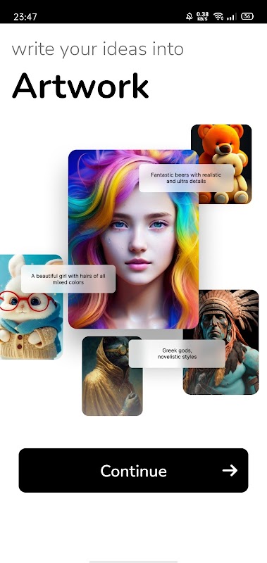 ArtyAi এর মাধ্যমে আপনার ধারনাগুলিকে অত্যাশ্চর্য ভিজ্যুয়ালে রূপান্তর করুন, পাঠ্য থেকে ছবি তৈরি করা, ফটো সম্পাদনা করা এবং সুন্দর কোলাজ তৈরি করার জন্য চূড়ান্ত অ্যাপ। আপনি একজন শিল্পী, সোশ্যাল মিডিয়া উত্সাহী, বা শুধুমাত্র এমন কেউ যিনি তৈরি করতে ভালোবাসেন, ArtyAi-এর কাছে আপনার দৃষ্টিভঙ্গিকে জীবন্ত করার জন্য প্রয়োজনীয় সমস্ত সরঞ্জাম রয়েছে৷