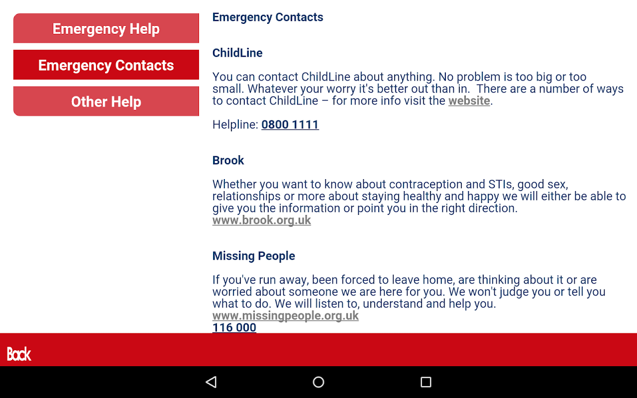 অল্প বয়সী ছেলেমেয়েদের জন্য একটি ইউ অ্যাপ্লিকেশন, নিরাপদ লিঙ্গ, নির্দেশ দেওয়া পরামর্শ এবং পরিষেবাগুলিতে উত্সাহিত