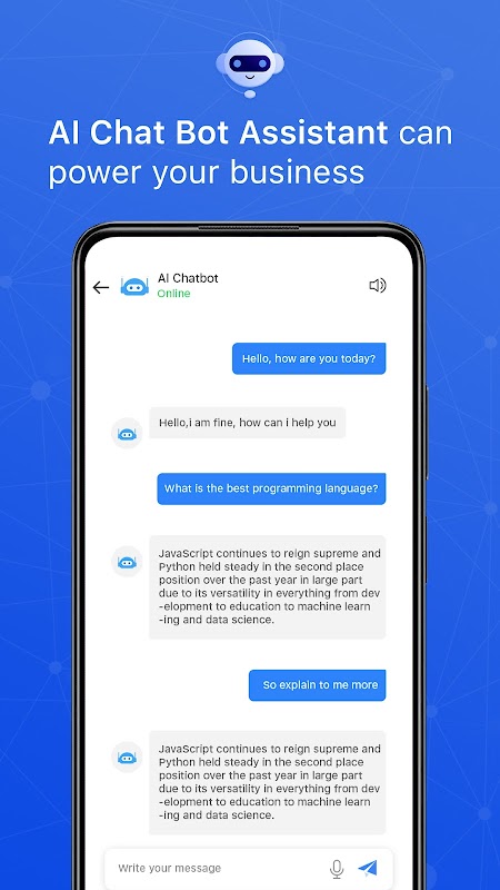 দাবিত্যাগ: এই অ্যাপটি অন্য কোন অ্যাপ বা কোম্পানির সাথে অনুমোদিত নয়। এই অ্যাপটি শুধুমাত্র AI চ্যাটবটের সাথে ইন্টারঅ্যাক্ট করার জন্য একটি মোবাইল ইন্টারফেস প্রদান করে যা GPT 3 প্রযুক্তি দ্বারা চালিত।