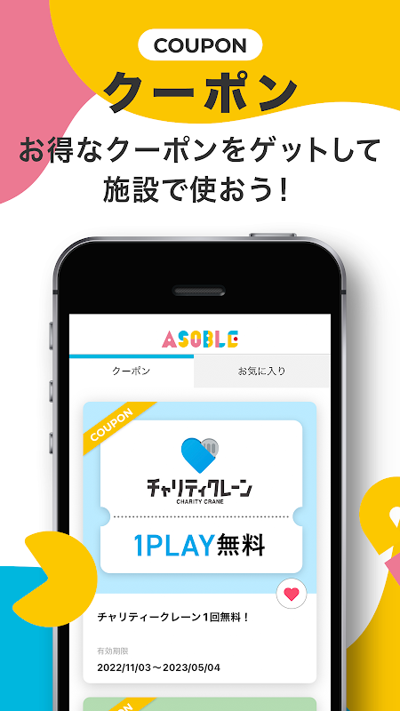 এটি "ASOBLE" এর অফিসিয়াল অ্যাপ! সুবিধায় ব্যবহার করা যেতে পারে এমন কুপন, ইভেন্টের তথ্য এবং শুধুমাত্র অ্যাপের সামগ্রীও উপলব্ধ! সুবিধাজনক তথ্য সরবরাহ করে এমন পুশ বিজ্ঞপ্তিগুলিও বিতরণ করা হয়!