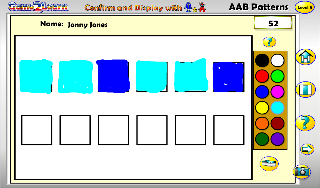 Assessing AAB Patterns with Q&A also includes a number of 'just for fun' brain games that reward children for completing each assessment task while breaking the continuous assessment cycle and its associated anxiety.