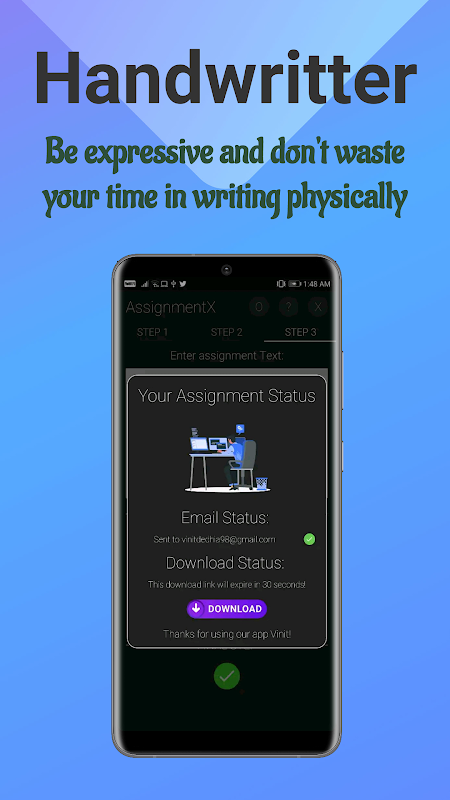 "Assignment Automatic" is an app that reduces the human effort by simply converting a text copied from the internet, messages, Ebook, doc pdf, websites to a handwritten page or you can say that it converts text to handwriting with full customization possible.