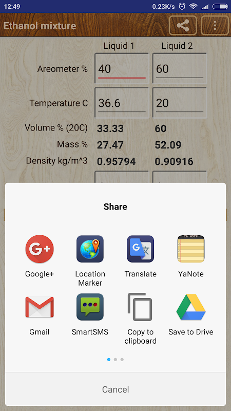 ক্যালকুলেটর অ্যাকাউন্ট তরল, ভলিউম শতাংশ এবং তরল ভলিউম তাপমাত্রা নেয়