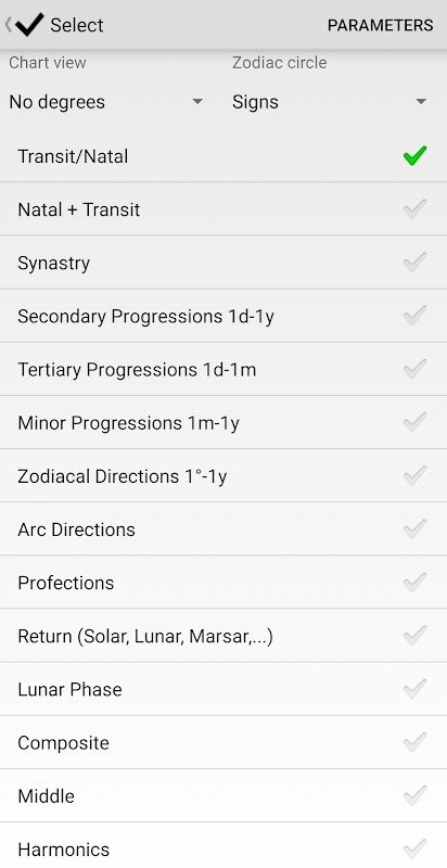 অ্যাপে রাশিচক্রের চিহ্নগুলিতে, গৃহে এবং বিপরীতমুখী অবস্থায় জন্মগত গ্রহগুলির ব্যাখ্যা রয়েছে, প্রসবের বাড়িতে ট্রানজিট গ্রহগুলি, প্রসবের দিকগুলি, ট্রানজিট থেকে জন্মগত দিকগুলি, সিনাস্ট্রি দিকগুলি, জন্মের আরোহণ এবং অ্যাপে চিহ্নগুলিতে ঘরগুলি।