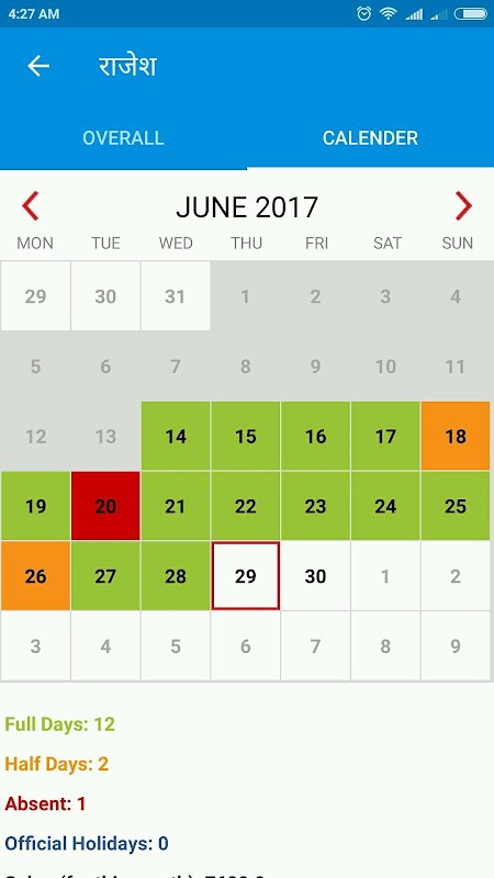 - অপশন কর্মচারীদের উপস্থিতি ক্যালেন্ডারটিতে পূর্ণ দিন, অর্ধদিবস, অনুপস্থিত এবং ছুটির চিহ্নিত করতে।