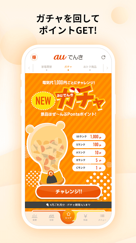 আপনার বিদ্যুৎ বিলের জন্য খরচ করা প্রতি 1,000 ইয়েনের জন্য, আপনি গাছা ঘুরতে পারেন এবং পোন্টা পয়েন্ট জিততে পারেন।