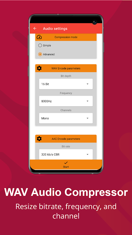• উন্নত মোড কম্প্রেশন (সামঞ্জস্য করুন: ফ্রিকোয়েন্সি, বিট রেট, চ্যানেল..)