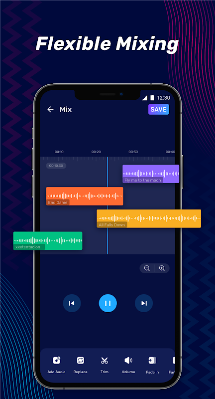 মাল্টি-ট্র্যাক মিউজিক এডিটিং ফাংশন সহ গান মিক্সার: অডিও ঢোকান, নমনীয়ভাবে গান মিশ্রিত করতে একাধিক ট্র্যাকে সঙ্গীত মিশ্রিত করুন।