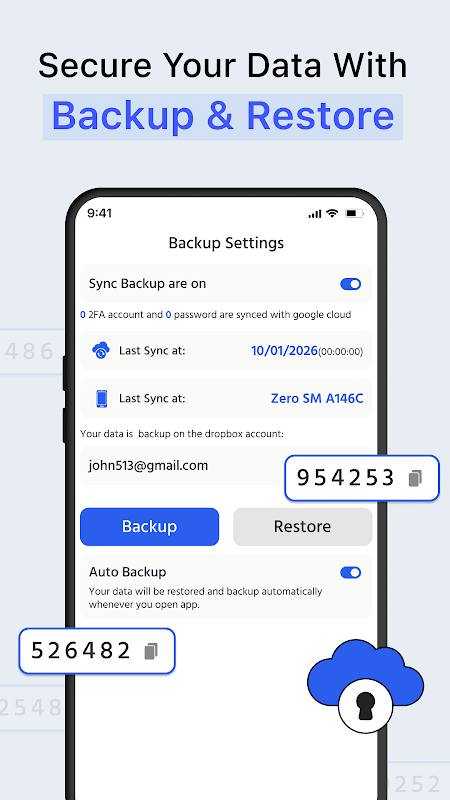 এই 2FA প্রমাণীকরণকারী সমস্ত ব্যবহারকারীদের জন্য তৈরি করা হয়েছে-শিশু বা উন্নত-এক জায়গায় 2 ফ্যাক্টর প্রমাণীকরণ এবং অ্যাকাউন্ট নিরাপত্তা পরিচালনা করার জন্য একটি পরিষ্কার UI এবং মসৃণ কর্মক্ষমতা প্রদান করে।