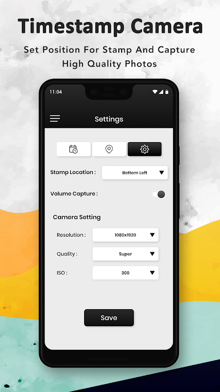 সেটিংস আপনি এখানে নিজের পছন্দ অনুযায়ী করতে পারেন, আপনি ফন্ট, সময় স্ট্যাম্প অবস্থান, ছবির নাম পরিবর্তন করতে পারেন, সহজেই এটি পরিবর্তন করতে পারেন।