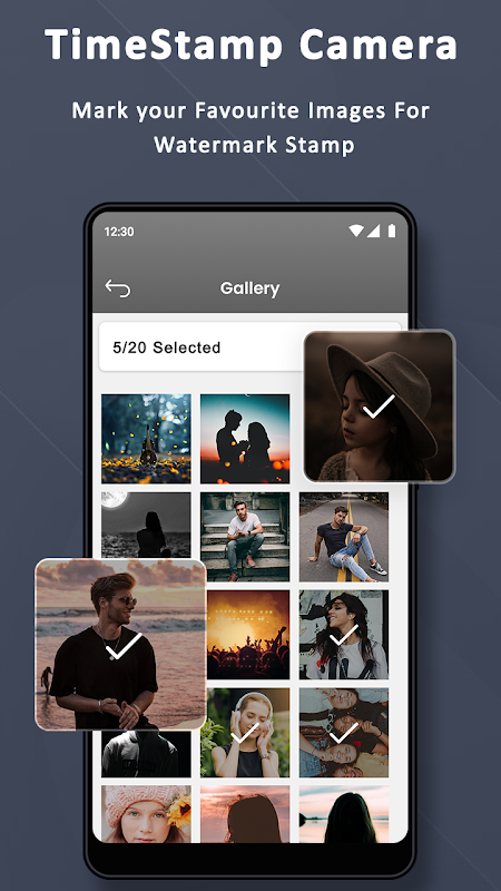 Stamp Date on Photos : Date-Time Stamp Camera Photos with quickly add a Date and Time Stamp tag and Logo Watermark to your “SAVED GALLERY PHOTOS” and embellish those precious memories forever.