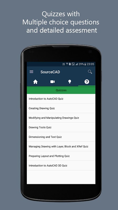 AutoCAD Tutorial by SourceCAD is a completely free app which will help you in learning AutoCAD from a basic to the professional level. This app is not a plain simple AutoCAD tutorials app it is a lot more than that. The user interface of the app is clutter free with minimal or no adverts at all wherever possible. The app is linked with its parent website Thesourcecad.com and hence it gets updated automatically whenever new articles or content is published on the SourceCAD site.