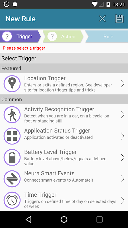 AutomateIt প্রো দরকারী নিয়ম একটি সেট প্রদান করে: