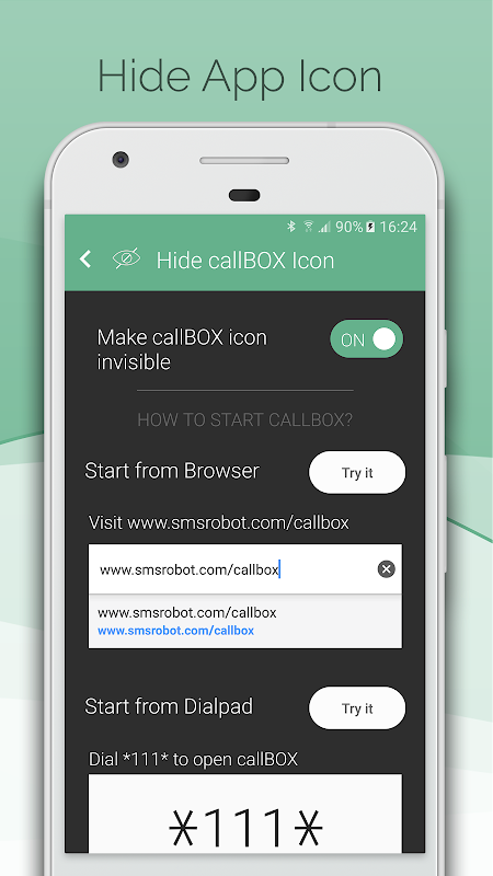 We have been working hard to protect your privacy. From now on you can hide app icon so no one knows that you have callbox installed on your device. Pin Code protection provides additional level of security to prevent unauthorized application access.