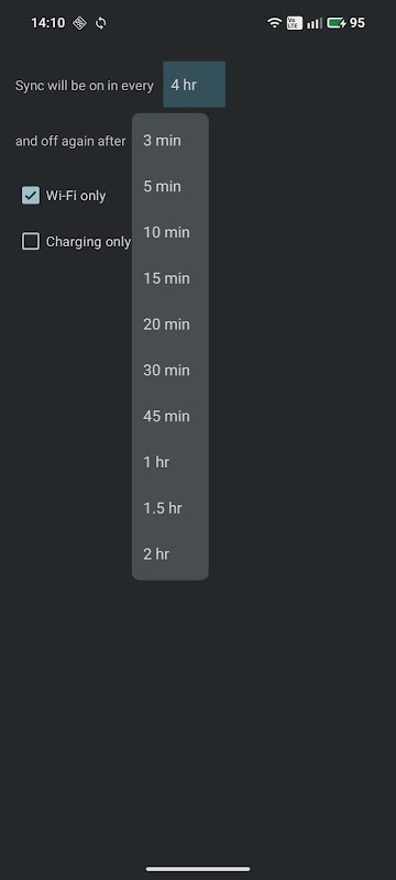 • চার্জিং + ওয়াই-ফাই — সর্বাধিক ব্যাটারি সাশ্রয়। উভয় শর্ত পূরণ হলেই সিঙ্ক করুন।