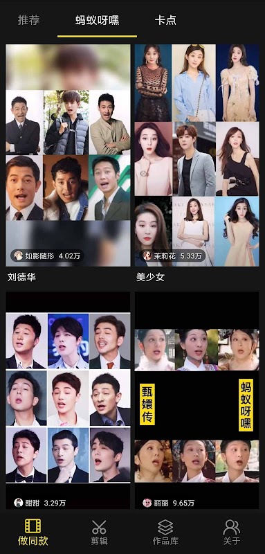 4.本次avatarify新增了丰富的模板,有:蚂蚁呀嘿、视频卡点、六宫格等
