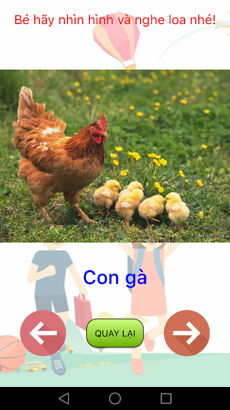 - Học và làm quen, nhận biết các đồ vật, con vật xung quanh bé (có hình ảnh + âm thanh sinh động)