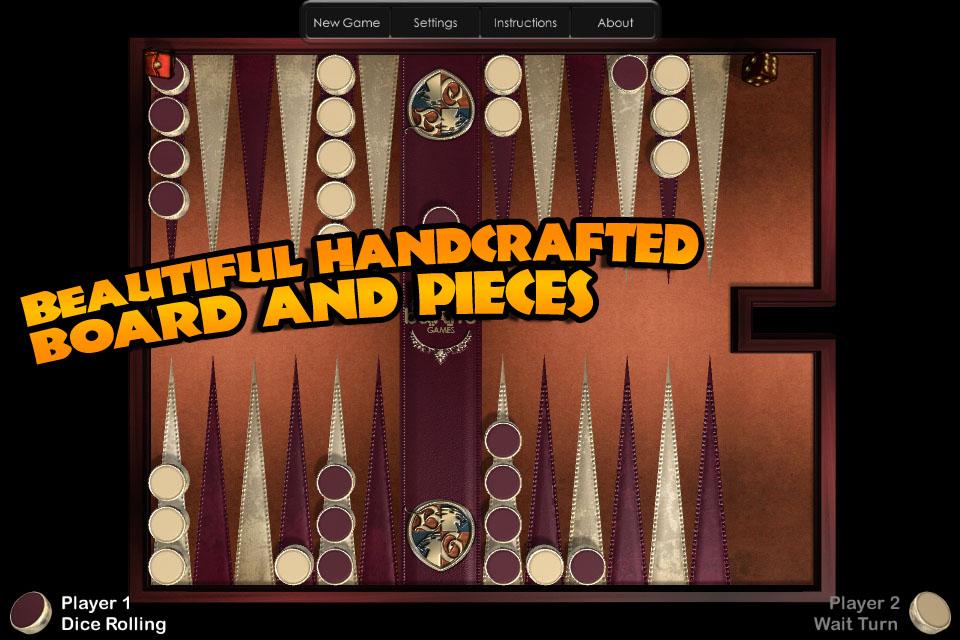 সব সময় ক্লাসিক বোর্ড খেলা, টকটকে গ্রাফিক্স, কম্পিউটার প্রতিপক্ষের, এবং স্বজ্ঞাত ইন্টারফেস সঙ্গে। ব্যাকগ্যামন ভাগ্য এবং কৌশল একটি খেলা। সুন্দর handcrafted বোর্ড এবং টুকরা ঘূর্ণন এবং জুম সঙ্গে একটি 3D দৃশ্য শোকেস করা হয়। ব্যাকগ্যামন আপনি বা কম্পিউটার বিরুদ্ধে আপনার বাজানো দক্ষতা পরীক্ষা করে দেখতে পারেন একই ডিভাইসে বন্ধু বা পরিবারের বিরুদ্ধে।