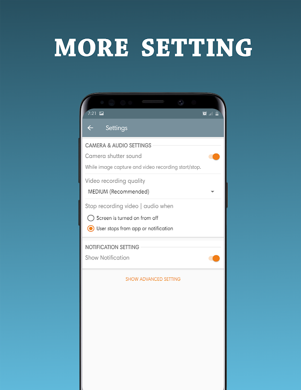 Record Video | Audio | Take photo in background, even when screen is off.