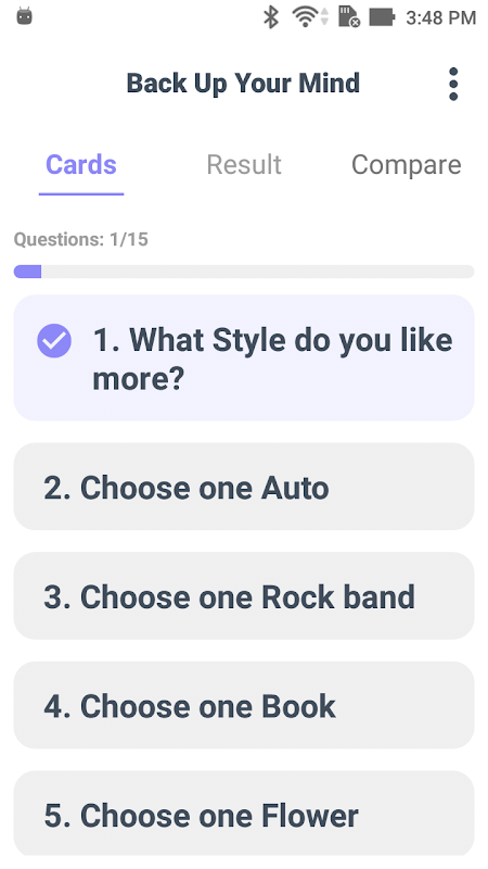 আপনি কি দীর্ঘদিন ধরে আপনার মনের কক্ষগুলি অন্বেষণ করতে চেয়েছিলেন? তারপরে "আপনার মনের ব্যাক আপ" কুইজটি আপনার বিশ্বদর্শন সংজ্ঞায়িত করার এবং আপনার পছন্দগুলি ভাগ করার একটি অনন্য উপায়। এই অ্যাপ্লিকেশনটি আপনার পছন্দের উপর ভিত্তি করে আপনার নিজস্ব ব্যবহারকারী প্রোফাইল তৈরি করার জন্য তৈরি করা হয়েছে। সবচেয়ে বড় বিষয় হল আপনি সারা বছর ধরে আপনার দৃষ্টিভঙ্গি কীভাবে পরিবর্তন করেন তা পর্যবেক্ষণ করতে পারেন এবং তারপরে আপনার ফলাফলগুলি তুলনা করুন এবং উপসংহার টানুন। তদুপরি, আপনি যদি চান, আপনি আপনার বন্ধুদের এবং আপনার পছন্দগুলির তুলনা করতে পারেন এবং তারপর প্রাপ্ত ফলাফলগুলি নিয়ে আলোচনা করতে পারেন। উপরন্তু, আপনার সম্পূর্ণ প্রোফাইলের উপর ভিত্তি করে, আমাদের অ্যাপ কিভাবে আপনার সময় কাটাবেন সে সম্পর্কে আপনার বিভিন্ন ধারনা দিতে পারে। আমরা নিশ্চিত যে আপনি শিথিল করার এই কৌতুকপূর্ণ উপভোগ করবেন।