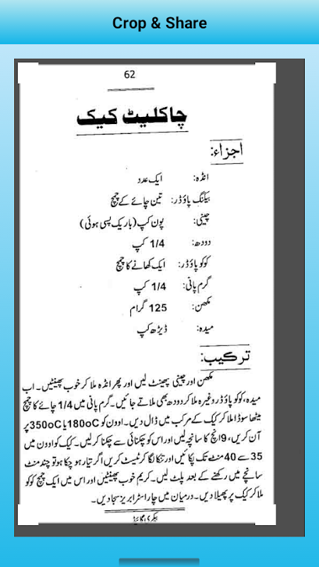 This app (book) is about bakery recipes, which is written by Alia Khan. This app is specially for married women and young girls, who want to make bakery recipes like biscuits, cakes, pizza, sandwich, roll, burger, pastry and pudding etc for their children and family members respectively. This app contains 190 pages with hundred plus bakery recipes.