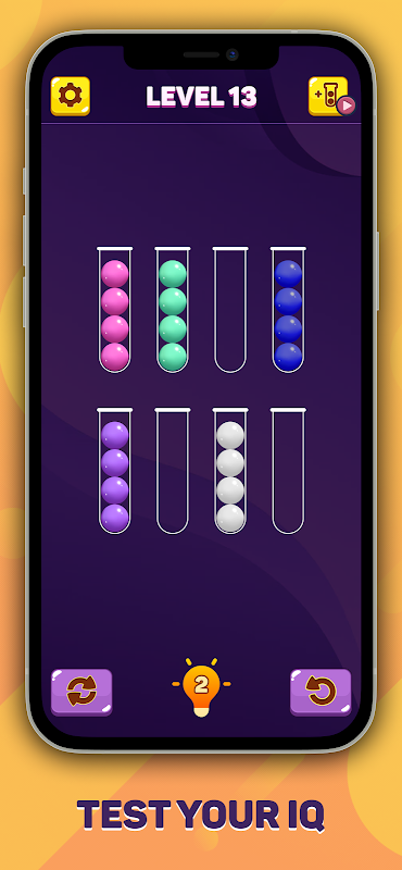 বল সাজানোর ধাঁধা - রঙ সাজানোর একটি মজার এবং আসক্তিমূলক ধাঁধা খেলা! এটি একটি মজাদার এবং শিথিল খেলা যা আপনার মস্তিষ্ককে বিনোদন দেয় এবং উদ্দীপিত করে! টিউবগুলিতে রঙিন বলগুলি সাজানোর চেষ্টা করুন যতক্ষণ না একই রঙের সমস্ত বল একই টিউবে থাকে। সময় কাটানোর জন্য দুর্দান্ত খেলা এবং এটি আপনাকে ভাবতে বাধ্য করে।