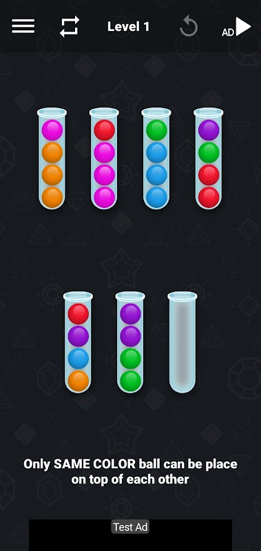 • নিয়মটি হ'ল আপনি যদি কেবল দুটি বলের উপরে একটি বল সরিয়ে নিতে পারেন তবে উভয়টিরই রঙ একই থাকে এবং আপনি যে নলটিতে যেতে চান সেখানে পর্যাপ্ত স্থান রয়েছে।