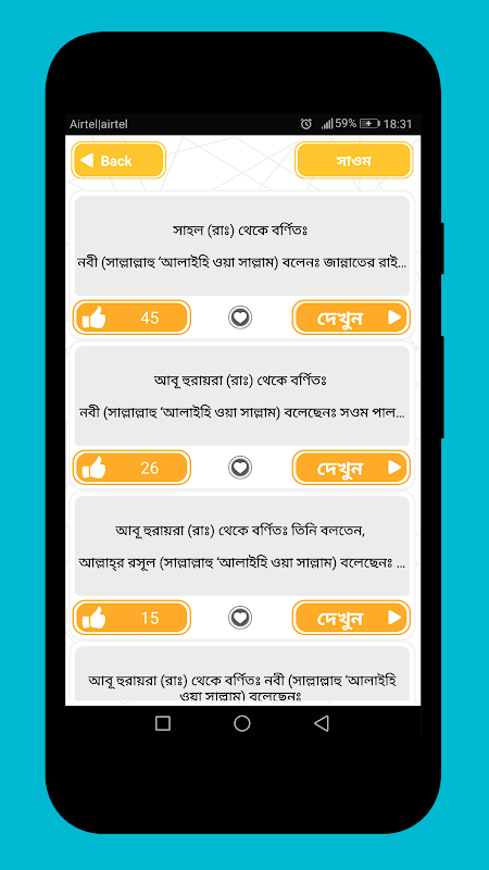 এই বাংলা ইসলামিক অ্যাপ এ ১০ টি বিভাগে বিভক্ত বিষয় ভিত্তিক হাদিস উপাস্থাপিত হয়েছে। আশা করি আমদের এই "বাংলা বিষয় ভিত্তিক হাদিস" নামক ইসলামিক অ্যাপ টি ভাল লাগবে।
