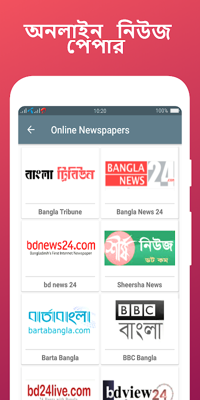 অ্যাপটি বাংলাদেশের সেরা এবং অনন্য নিউজ অ্যাপ। কারণ আপনি এই অ্যাপ্লিকেশনটিতে অনেকগুলি সংবাদ উত্স আবিষ্কার করতে পারেন। আমাদের একটি দল আছে যারা এটিকে আরও সহজ এবং দ্রুততর করার জন্য সর্বদা অ্যাপটিতে কাজ করে। আমরা আপনার পর্যন্ত নিয়মিত নতুন সংবাদপত্র বা উত্স যুক্ত করি।
