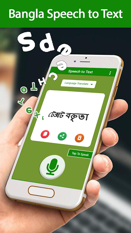 Bangla speech to text or voice to text allows you to convert your voice note into Bangla text. It is voice into text typing app in which you only have to speak words in Bangla font and it will convert them into text. The text will be shown after you done speaking and the converted text can be easily shared with your selected contacts. Bangla Speech to text app is an easy and useful app to use. It saves a lot of time and effort of typing Bangla. You just have to speak words and this will convert them into text automatically. The voice into text or speech recognizer app will capture your voice and convert it into text. In Bangla voice converter app you can focus on your thoughts and text rather than on the keyboard.