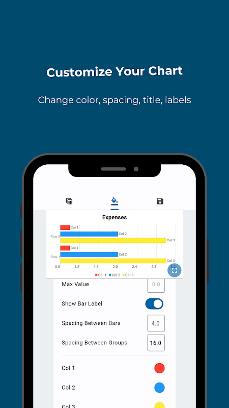 8. চার্ট কাস্টমাইজেশন: আপনার অনন্য শৈলী এবং প্রয়োজনীয়তার সাথে মেলে আপনার চার্টগুলিকে সাজান। আপনার ডেটার নিখুঁত ভিজ্যুয়াল উপস্থাপনা তৈরি করতে রঙ, লেবেল, শিরোনাম এবং আরও অনেক কিছু কাস্টমাইজ করুন।