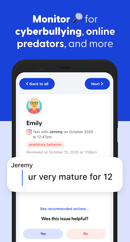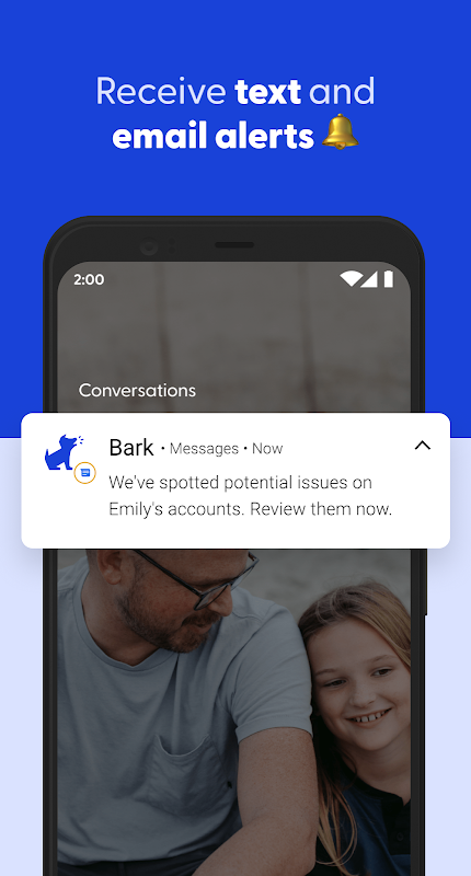বার্ক আপনার সন্তানের পাঠ্য বার্তা, ইমেল, ইউটিউব এবং 30+ অ্যাপস এবং সামাজিক মিডিয়া প্ল্যাটফর্মগুলি সাইবার বুলিং, আত্মঘাতী আদর্শ, প্রাপ্তবয়স্কদের সামগ্রী, যৌন শিকারি, অশ্লীলতা, সহিংসতার হুমকি এবং আরও অনেক কিছুর জন্য পর্যবেক্ষণ করে। অনলাইনে সম্ভাব্য সমস্যাযুক্ত কিছু ঘটে তখনই পিতামাতারা সতর্কতা পান। আপনার সন্তানের ফোনের সমস্ত কিছুর কাছে আপনার সম্পূর্ণ অ্যাক্সেস থাকবে না - কেবলমাত্র সেই জিনিসগুলির বিষয়ে যা আপনার জানা দরকার।