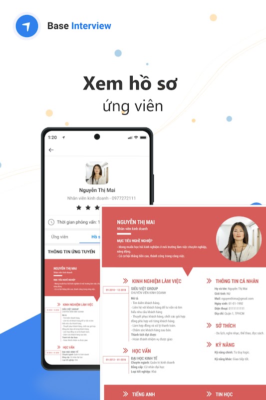বেস সাক্ষাত্কার ব্যবহারকারীদের দায়িত্বে থাকা সাক্ষাত্কারের তালিকা দেখতে, আসন্ন সাক্ষাত্কারগুলি সম্পর্কে বিজ্ঞপ্তি পেতে, প্রার্থীদের সিভি দেখতে, প্রার্থীদের মূল্যায়ন করতে, ... কাজের ব্যবস্থা করতে, তথ্য প্রস্তুত করার অনুমতি দেয়। নিউজ একটি সাক্ষাত্কারের ফলাফল সবচেয়ে দক্ষ, দ্রুত এবং স্বচ্ছ উপায়ে রেকর্ড করে।