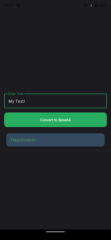 সহজভাবে আপনার টেক্সট ইনপুট করুন, 'বেস64-এ রূপান্তর করুন' বোতামটি টিপুন, এবং অবিলম্বে বেস64-এনকোডেড ফলাফল পান। অ্যাপটি সম্পূর্ণ অফলাইনে কাজ করে, আপনার ডেটা আপনার ডিভাইসে থাকে তা নিশ্চিত করে।