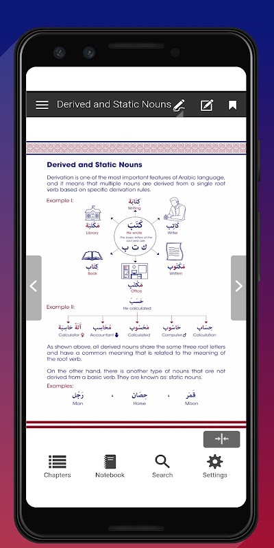 এই অ্যাপটি একটি ইন্টারেক্টিভ ইবুক যাতে মৌলিক ব্যাকরণগত নিয়ম, যেমন বিশেষ্য, সর্বনাম, বিশেষণ, ক্রিয়াপদ, ক্রিয়াবিশেষণ, অব্যয়, ইত্যাদি এবং আমরা কীভাবে বাক্য তৈরি করতে সেগুলি ব্যবহার করি তা অন্তর্ভুক্ত করে। বাক্যটিতে শব্দের ব্যাকরণগত ক্ষেত্রে ফোকাস করার পাশাপাশি যা শিক্ষার্থীকে ব্যাকরণের ভুলগুলি এড়াতে সাহায্য করে যাতে তার আরবি ভাষা সঠিক এবং শক্তিশালী হয়।
