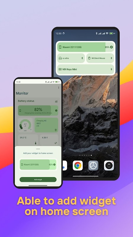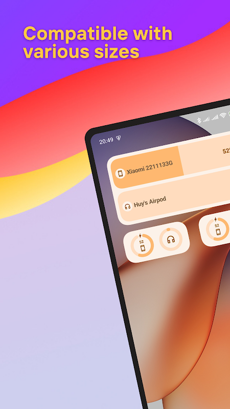 একটি লাইটওয়েট অ্যাপ্লিকেশন একটি ডিভাইসের ব্যাটারির স্থিতি নিরীক্ষণ করার জন্য ডিজাইন করা হয়েছে, ব্যাটারি স্বাস্থ্যের উপর রিয়েল-টাইম আপডেট প্রদান করে। অ্যাপটিতে একটি কাস্টমাইজযোগ্য উইজেট তৈরি করার বৈশিষ্ট্যও রয়েছে যা সহজে অ্যাক্সেসের জন্য সরাসরি হোম স্ক্রিনে বর্তমান ব্যাটারি শতাংশ প্রদর্শন করে।