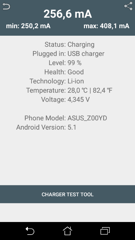 The Battery+ also identifies the charge / discharge speed of your device, in mA.
